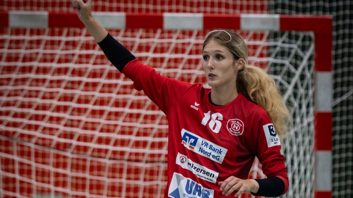 Zu Beginn der Partie legten die Gäste binnen zwei Minuten eine 2:0 Führung vor. Doch die Nordfrauen fanden sich schnell und waren vor allem durch ihr Tempospiel gefährlich. Binnen sechs Minuten drehte das Jänicke-Team den Rückstand in eine eigene 6:3 Führung. Doch ausgerechnet in Überzahl leisteten sich die Gastgeberinnen danach zu viele überflüssige technische Fehler und überhastete Abschlüsse. Dies lud die Lipperländerinnen ihrerseits zu Tempogegenstößen ein. In Unterzahl erzielten die Gäste drei Tore in Folge. Anstatt sich abzusetzen, mussten die Nordfrauen so den unnötigen 6:6 Ausgleich hinnehmen. Erst in Gleichzahl fand das Jänicke-Team wieder ins Spiel. Vor allem über die Rechtsaußenposition waren die Nordfrauen erfolgreich. Von dort erzielte Fina Walluks vier blitzsaubere Tore. Ein weiterer schön langgezogener Heber von ihr klatschte ans Lattenkreuz. So legten die Gastgeberinnen stets zwei Treffer vor. Doch dann wurden wieder einige Chancen liegengelassen und so glichen die Gäste sechs Minuten vor der Pause zum 12:12 aus. Doch die überragende Nord-Torhüterin Lea Tiedemann, die vor der Partie emotional verabschiedet wurde, brachte ihre Mannschaft wieder in die Spur. Sie vernagelte fünf Minuten lang ihr Gehäuse. Die starke Sandra Nickel, sowie Paula Heider und Lone Tolksdorf stellten dadurch beim 15:12 auf plus Drei zugunsten der Nordfrauen. Sinja Zarbock traf dann noch für die Gäste, so dass es mit einem 15:13 Vorsprung für den TSV Nord Harrislee in die Kabinen der Holmberghalle ging.